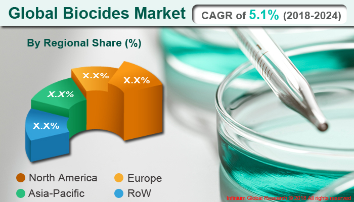A recent report published by Infinium Global Research on biocides market provides in-depth analysis of segments and sub-segments in the global as well as regional biocides market. The study also highlights the impact of drivers, restraints and macro indicators on the global and regional biocides market over the short term as well as long term. The report is a comprehensive presentation of trends, forecast and dollar values of the global biocides market. According to report the global biocides market is projected to grow at a CAGR of 5.1% over the forecast period of 2018-2024.